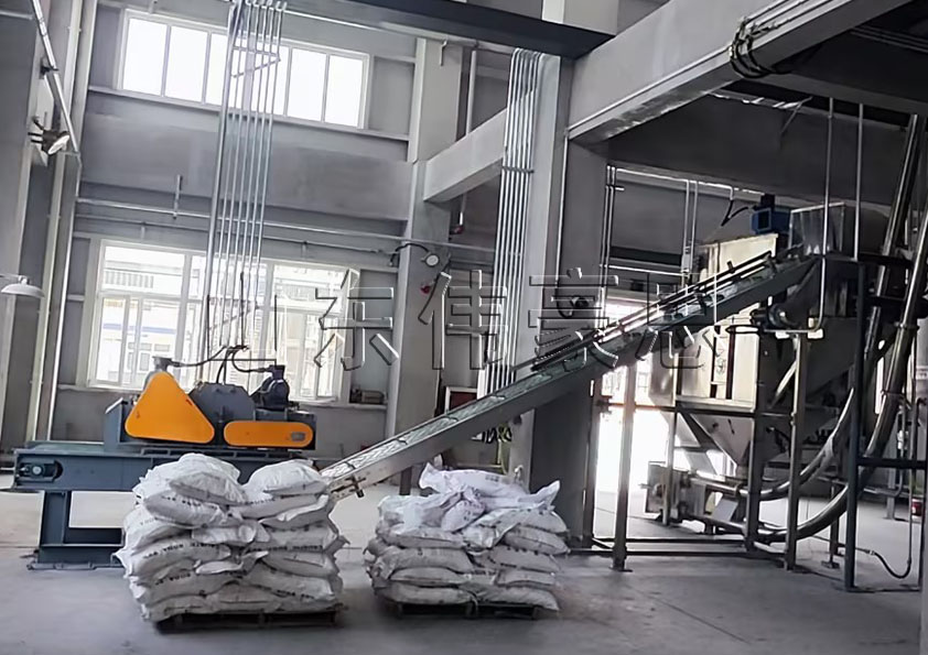 袋裝片堿自動擠壓破碎機+自動拆包機