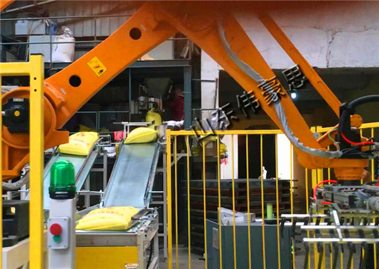 (1)大米全自動(dòng)碼垛機(jī)生產(chǎn)線應(yīng)用的一般前提是生產(chǎn)線上自動(dòng)化包裝過程已經(jīng)初步實(shí)現(xiàn)。如包裝材料或者包裝容器可以自動(dòng)整理、輸入以及包裝物自動(dòng)輸出:在機(jī)械配套方面,單機(jī)設(shè)備及機(jī)組和生產(chǎn)線可以相互自動(dòng)協(xié)調(diào)工作,如發(fā)生故障機(jī)器可以配備自動(dòng)處理裝置,或者操作人員可以輕松解決;其中自動(dòng)檢測(cè)設(shè)備可以檢測(cè),不合格產(chǎn)品并且自動(dòng)剔除;如果包裝物品種較多,為配合小批量生產(chǎn)包裝設(shè)備的實(shí)際情況,柔性化的自動(dòng)包裝碼垛生產(chǎn)線是可以考慮的。