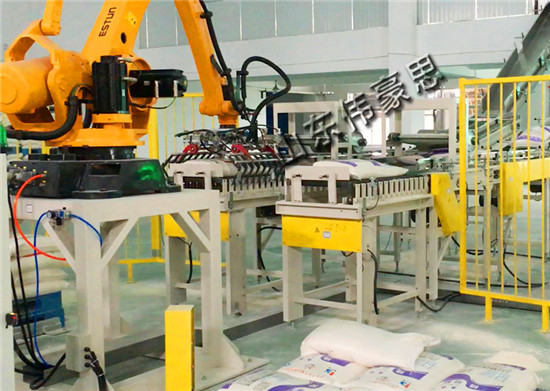 熟石灰全自動碼垛機主要由機械主體、伺服驅(qū)動系統(tǒng)、手臂機構、末端執(zhí)行器(抓手)、末端執(zhí)行器調(diào)節(jié)機構以及檢測機構組成,按不同的物料包裝、堆垛順序、層數(shù)等要求進行參數(shù)設置,實現(xiàn)不同類型包裝物料的碼垛作業(yè)。