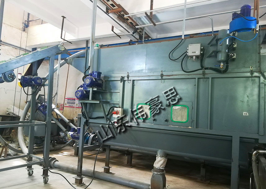 由人工拆垛并將包裝袋放到輸送機(jī)上,經(jīng)過包裝袋整理機(jī)的袋子進(jìn)入破碎機(jī)后自動(dòng)拆包,物料自動(dòng)分離并經(jīng)檢測(cè)落入下游設(shè)備,或進(jìn)行輸送到指定位置。廢袋自動(dòng)分離后自動(dòng)從機(jī)器內(nèi)排除。拆包中產(chǎn)生的揚(yáng)塵由過濾除塵器凈化過濾達(dá)標(biāo)后排出。