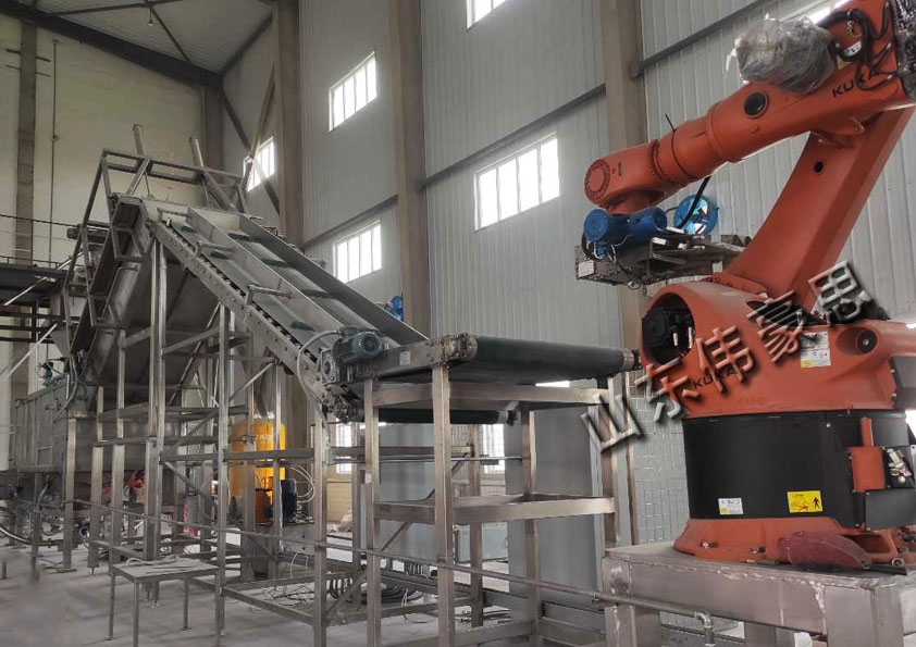 膠粉全自動拆垛機(jī)械手可以與拆包卸料作業(yè)的自動拆包機(jī)組成自動拆包生產(chǎn)線。