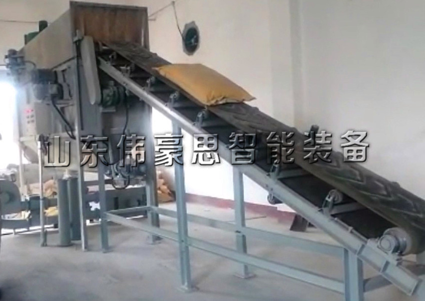 粉狀顏料自動(dòng)拆袋機(jī)由機(jī)器人自動(dòng)拆垛或人工將包裝袋放到輸送機(jī)上,經(jīng)過(guò)包裝袋整理機(jī)的袋子進(jìn)入破碎機(jī)后自動(dòng)拆包,材料自動(dòng)分離并經(jīng)檢測(cè)落入下游設(shè)備,或進(jìn)行輸送到指定位置,廢袋自動(dòng)分離后自動(dòng)壓縮,自動(dòng)捆綁,自動(dòng)打包。拆包的過(guò)程中產(chǎn)生的揚(yáng)塵由過(guò)濾除塵器凈化過(guò)濾達(dá)標(biāo)后排出。