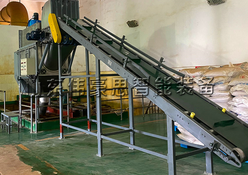 氧化硅自動破包機在破包的過程中和物料分離過程均為全封閉進行,而且每個過程都有收塵裝置,無粉塵外泄,噪音小,改善了工人的作業(yè)環(huán)境?,F(xiàn)場僅需一至兩人將包裝袋放置皮帶輸送機上即可,減輕了工人的作業(yè)強度。設(shè)備運行簡單、可靠,故障率低,減少了維護工作量。