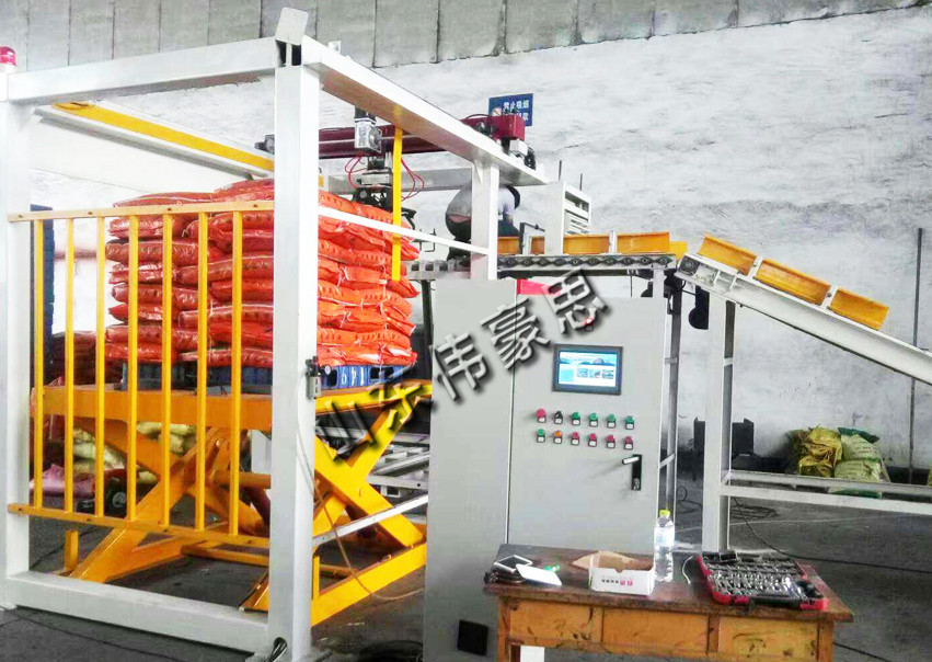 全自動(dòng)高位碼垛機(jī)一般是跟全自動(dòng)包裝機(jī)配套使用,一般是作為一個(gè)全自動(dòng)上袋、自動(dòng)稱重、自動(dòng)折邊封口,重量檢測(cè)、金屬檢測(cè)、超差剔除機(jī)械、自動(dòng)整袋機(jī)構(gòu)、倒袋導(dǎo)袋導(dǎo)入輸送、包裝袋調(diào)姿、包裝袋分組、碼放編組、升降機(jī)構(gòu)組成自動(dòng)包裝碼垛生產(chǎn)線。