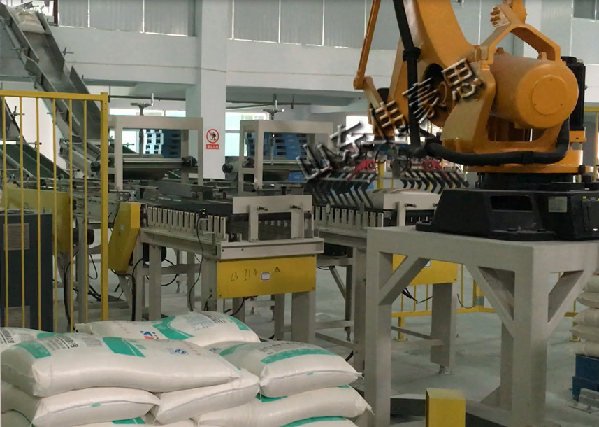袋裝碼垛機(jī)是一種自動(dòng)化程度高、集成度好的高速高位碼垛設(shè)備。碼垛機(jī)將包裝袋按照要求編組后再通過(guò)機(jī)械手將物料一層層整齊碼放在升降平臺(tái)上。作為包裝線的后續(xù)設(shè)備,提高轉(zhuǎn)運(yùn)能力和輸送效率,節(jié)省人工