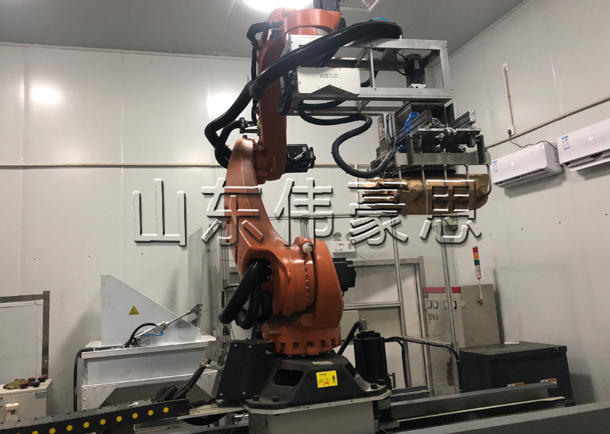 山東偉豪思(15314426573 殷)塑料顆粒碼垛機(jī)器人是自主將袋料或箱料碼垛在托盤上的設(shè)備,就是將已裝好袋/箱的物料全自動(dòng)按排列方式碼放在托盤上,并且可在碼垛多層后推出,然后被叉車運(yùn)往倉庫儲(chǔ)存的自動(dòng)化設(shè)備。