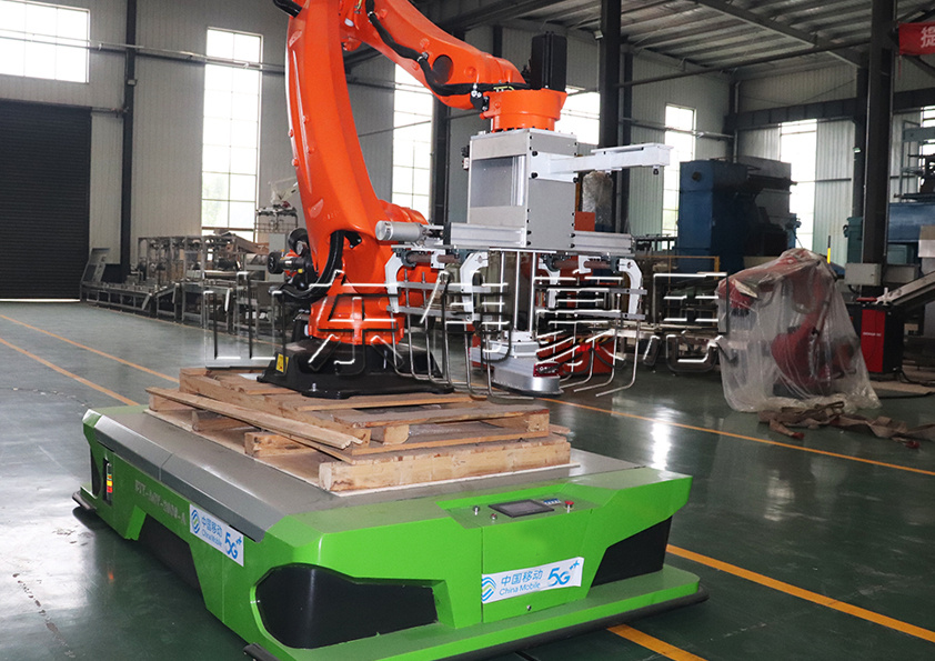 (5)抓袋碼垛機(jī)構(gòu)。采用碼垛機(jī)器人構(gòu)完成碼垛作業(yè)。