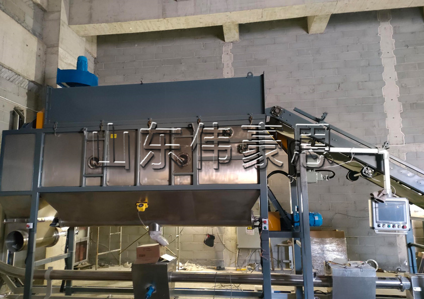 袋料由皮帶輸送機或其他方式輸送到一個45度角的滑道上,靠重力沿滑道滑動。 切割后的殘留袋子和物料滑入滾筒篩進行篩選。 從滾筒篩落下的物料由輸送設備輸出,破損的包裝袋、雜質(zhì)和結(jié)塊物料由滾筒篩帶出體外,袋子由廢袋收集器收集。