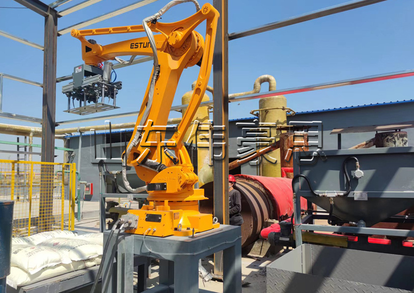 6、現(xiàn)場(chǎng)僅需將包裝袋放置在機(jī)械手拆垛機(jī)處即可,減輕了工人的作業(yè)強(qiáng)度。