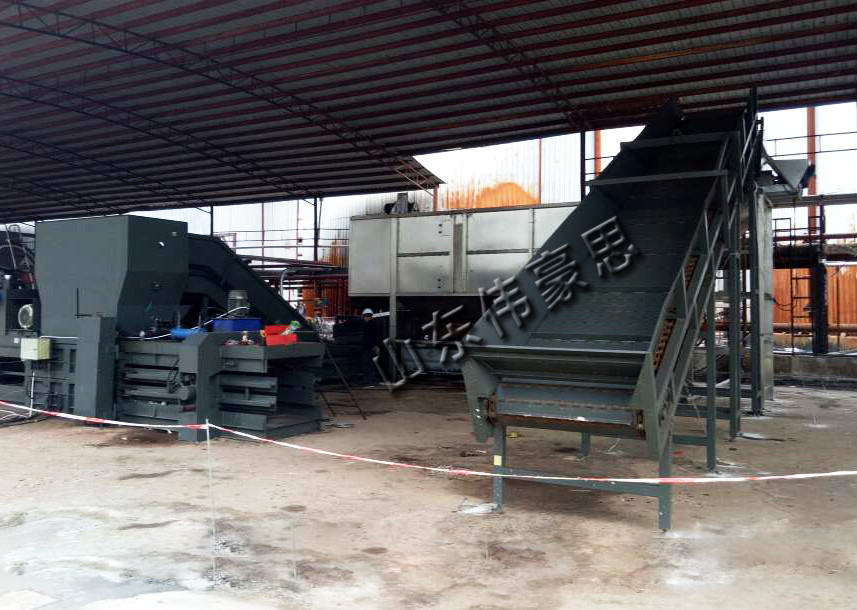 自動拆包機生產(chǎn)線用于分離或清空單層或多層的料袋。料袋可以是紙制料袋,聚乙烯料袋,帶有聚乙烯涂層的紙制料袋,塑料編織袋或是帶有聚乙烯涂層的塑料編織袋。料袋可以通過人工、機器手臂或傳送帶送入拆袋機的入口,在這個入口處蓋有一個收塵罩。料袋從傳送帶上滑下,進入割刀裝置,割刀是由兩組6片直徑350mm的圓刀組成,將料帶切割成條狀,破損的料袋和里面裝有的物料一起通過溜槽滑入篩分裝置中。通過圓筒篩的旋轉(zhuǎn),料袋漏到底部被完全清空。圓筒篩腔內(nèi)的槳板反復(fù)地提起已清空的料袋,這樣,料袋就完全與物料分離了。傾斜的槳葉幫助料袋移至圓筒篩的出口,接著它們滑入已裝配的廢袋壓榨機內(nèi)。