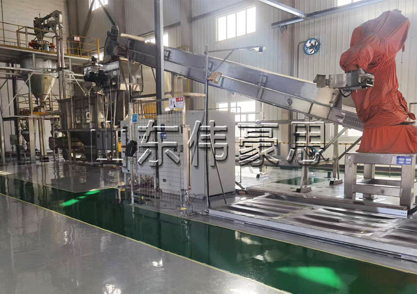 山東偉豪思碳酸鈣全自動拆包機器人的作業(yè)進(jìn)程,具體如下:
