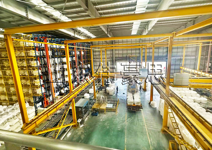 (2)噸包垛在緩存輸送機(jī)上排列等待