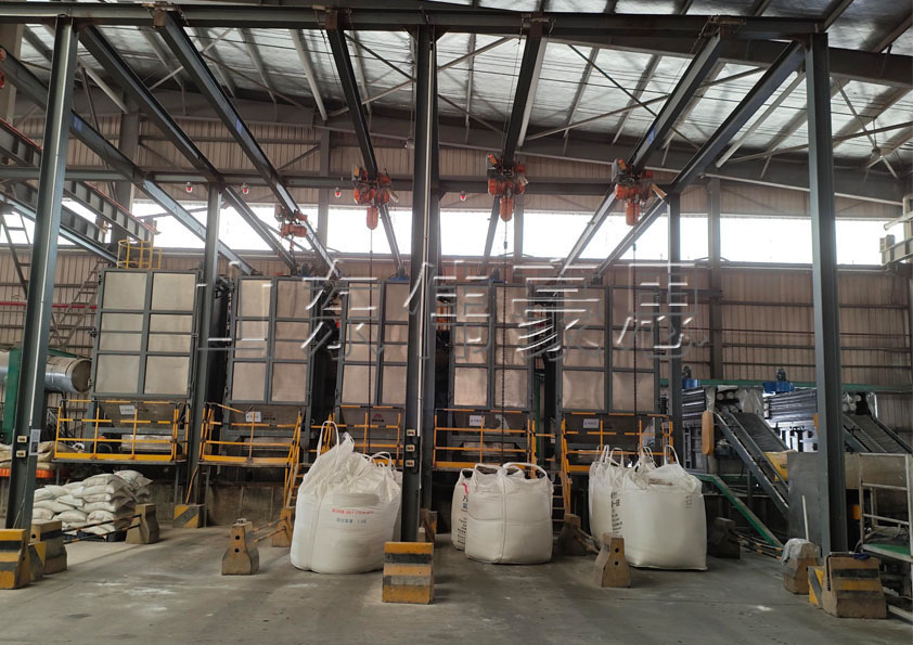 碳酸鋰噸袋拆包機由噸袋投料站、破碎機、篩分機、螺旋輸送機、中間倉、除塵裝置、電氣控制柜等組成,它的優(yōu)點在于它能夠效率高地處理大量噸袋裝物料,減少了人力勞動和物料處理的成本。同時,該設(shè)備還具有自動化程度高、操作簡便、維護方便等優(yōu)點。此外,噸袋拆包機還配備了除塵裝置,有效降低了粉塵污染和對環(huán)境的污染。