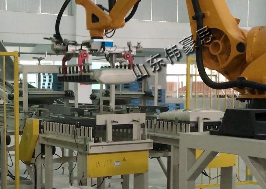 全自動碼垛機械手具有造型美觀、安裝方便、安全可靠、適用性強、維護費用低等特點,是廣大企業(yè)袋裝產(chǎn)品實現(xiàn)機械自動化代替人工搬運的理想機械設(shè)備??刂葡到y(tǒng)選用PLC控制器、低壓電器、彩色觸摸屏人機界面,可靠性高,穩(wěn)定性強;碼垛整齊穩(wěn)固,且碼垛花型可選擇;可選擇配置大容量托盤庫與重盤輸送機,提高生產(chǎn)效益。全自動碼垛機械手性能優(yōu)點: