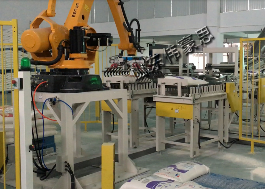 糧食全自動碼垛機械手是一種自動化程度高、集成度好的高速高位碼垛設(shè)備。碼垛機將包裝袋按照要求編組后再通過機械手將物料一層層整齊碼放在升降平臺上。作為包裝線的后續(xù)設(shè)備,提高轉(zhuǎn)運能力和輸送效率,同時也提高公司的生產(chǎn)效率