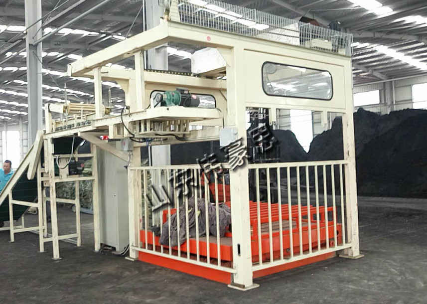 托盤提升架在開(kāi)始碼垛時(shí)處在極高位,每碼一層后隨即下降一層的高度。