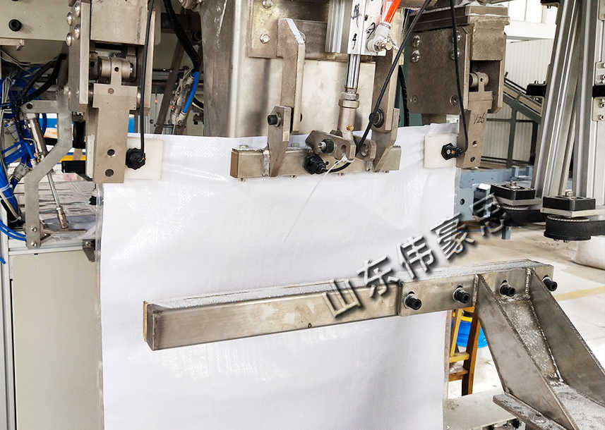 袋料自動(dòng)上袋包裝生產(chǎn)線的工作流程: