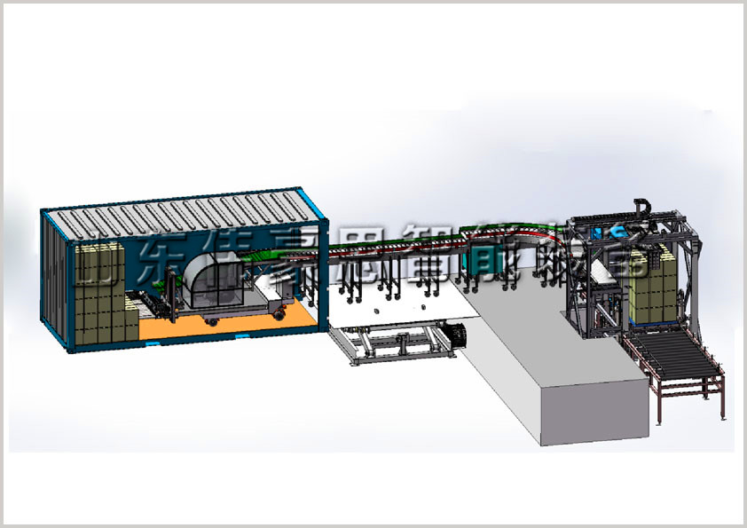 紙箱自動(dòng)裝車(chē)機(jī):適用于<50kg袋裝及紙箱物料的智能拆垛裝車(chē),集裝箱和平板車(chē)均可。紙箱自動(dòng)拆垛裝車(chē)機(jī)有紙箱自動(dòng)拆垛機(jī)、輸送線和裝車(chē)機(jī)器人組成。
