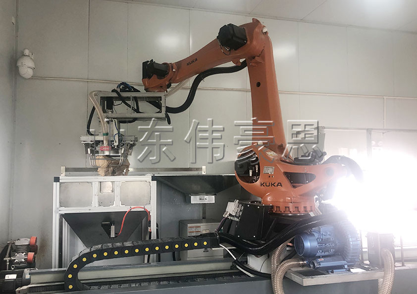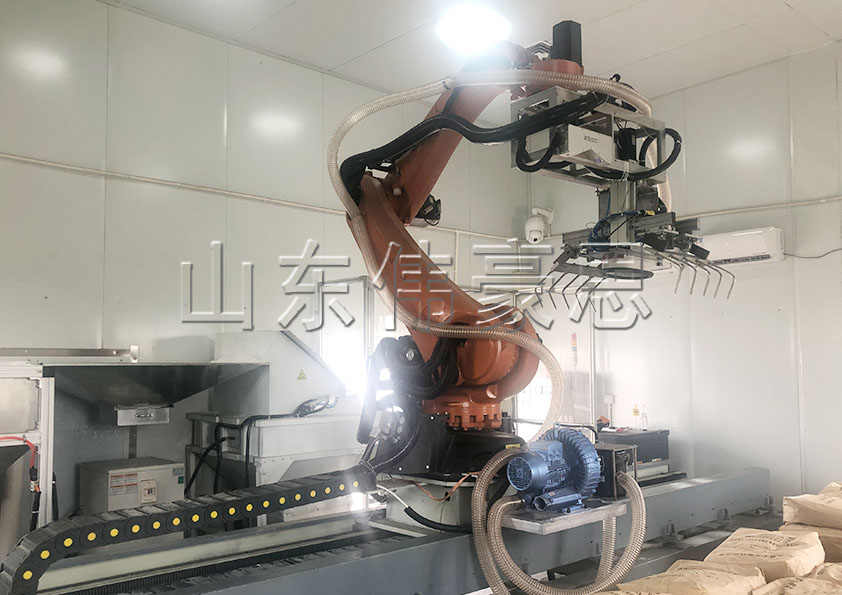 全自動破袋機器人是全自動、智能化、一體化原料包裝袋拆垛、拆包、回收、輸送、除塵系統(tǒng)。除又車上垛外,無需人工操作,它是由機械手抓手將要拆卸的物料袋抓取提升至割袋裝置上方,由割袋裝置拆袋,物料落入儲料罐內(nèi),機械抓手通過抖動清空料袋,此設(shè)計特別適應(yīng)于粘性、流動性不好和易結(jié)塊物料的卸料。